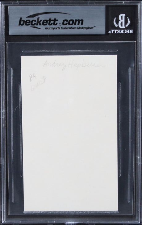 Audrey Hepburn Breakfast At Tiffany's Signed 3x5 Index Card BAS Slabbed