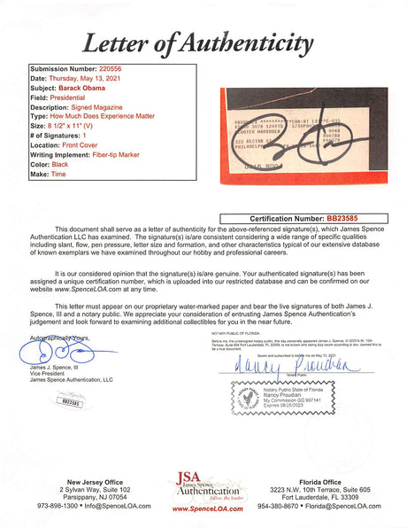 Barack Obama Authentic Signed March 10, 2008 Time Magazine JSA #BB23585
