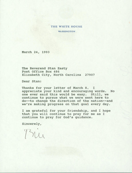 Bill Clinton Signed 6.75x9 1993 Typed Letter On WH Letterhead BAS #AB14597
