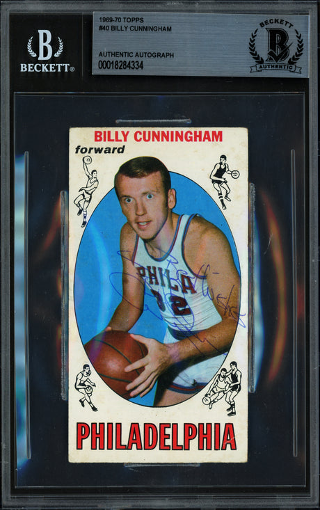 Very low stock (1 unit)$149Unit price /Unavailable Billy Cunningham Autographed 1969-70 Topps Rookie Card #40 Philadelphia 76ers Beckett BAS #18284334