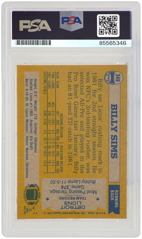 Billy Sims Signed Detroit Lions 1982 Topps All Pro Football Trading Card #349 - (PSA Encapsulated)