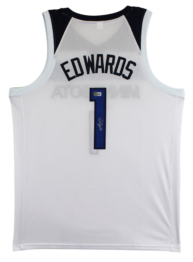 Anthony Edwards Authentic Signed White Pro Style Jersey Autographed BAS 2