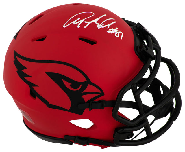 Celebrate a legendary wide receiver’s legacy with this Anquan Boldin signed Arizona Cardinals Rave Riddell speed mini helmet—a must-have for serious NFL collectors and Arizona Cardinals fans alike. Known for his toughness, reliable hands, and clutch performances, Anquan Boldin made a lasting impact during his NFL career, particularly with the Cardinals where he earned the 2003 NFL Offensive Rookie of the Year. This striking collectible pays tribute to his unforgettable time in Arizona and delivers eye-catching detail for display in any collection.