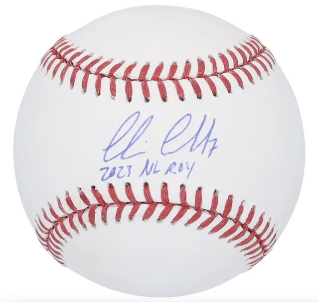 Celebrate one of baseball’s brightest rising stars with this officially authenticated Corbin Carroll autographed baseball, featuring the exclusive inscription, "2023 NL ROY". Carroll made history as the 2023 National League Rookie of the Year, energizing fans and leading the charge for the Arizona Diamondbacks with electrifying speed and dynamic play. This collectible captures a pivotal moment in his young but promising MLB career—making it a must-have for serious collectors and Diamondbacks faithful alike.