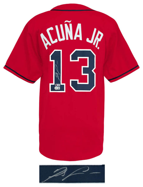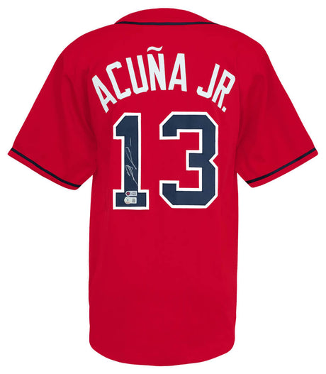 Ronald Acuna Jr. Signed Red Custom Baseball Jersey - (Beckett)