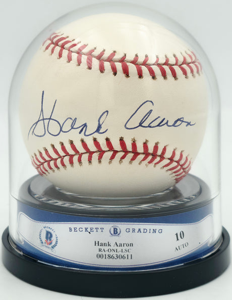Hank Aaron Autographed Official NL Baseball Atlanta Braves Auto Grade Mint 9 Beckett BAS #18630570