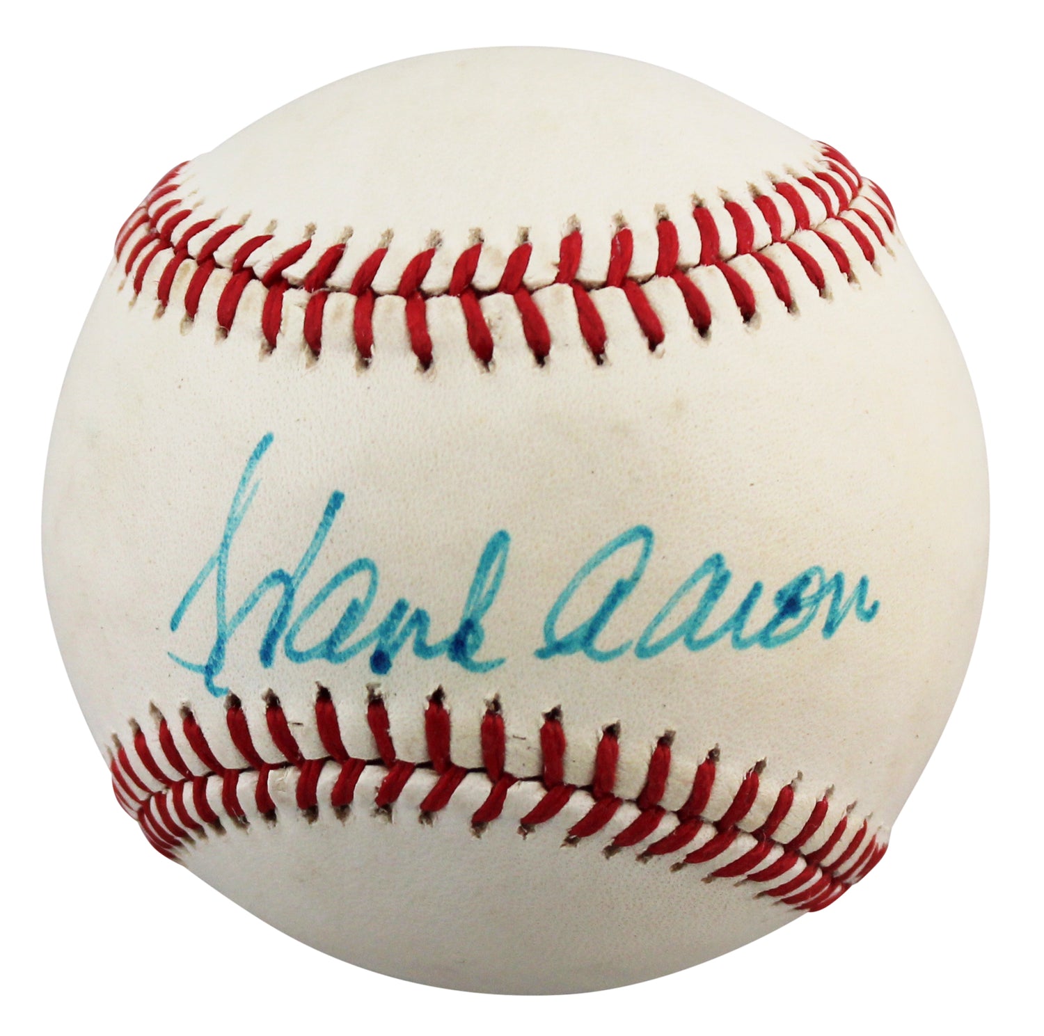 This signed baseball is a unique opportunity to own a piece of Milwaukee Braves and MLB history. Whether you're a dedicated collector or searching for the perfect gift for a baseball fan, this authenticated Hank Aaron autographed baseball is an exceptional piece to add to your collection.