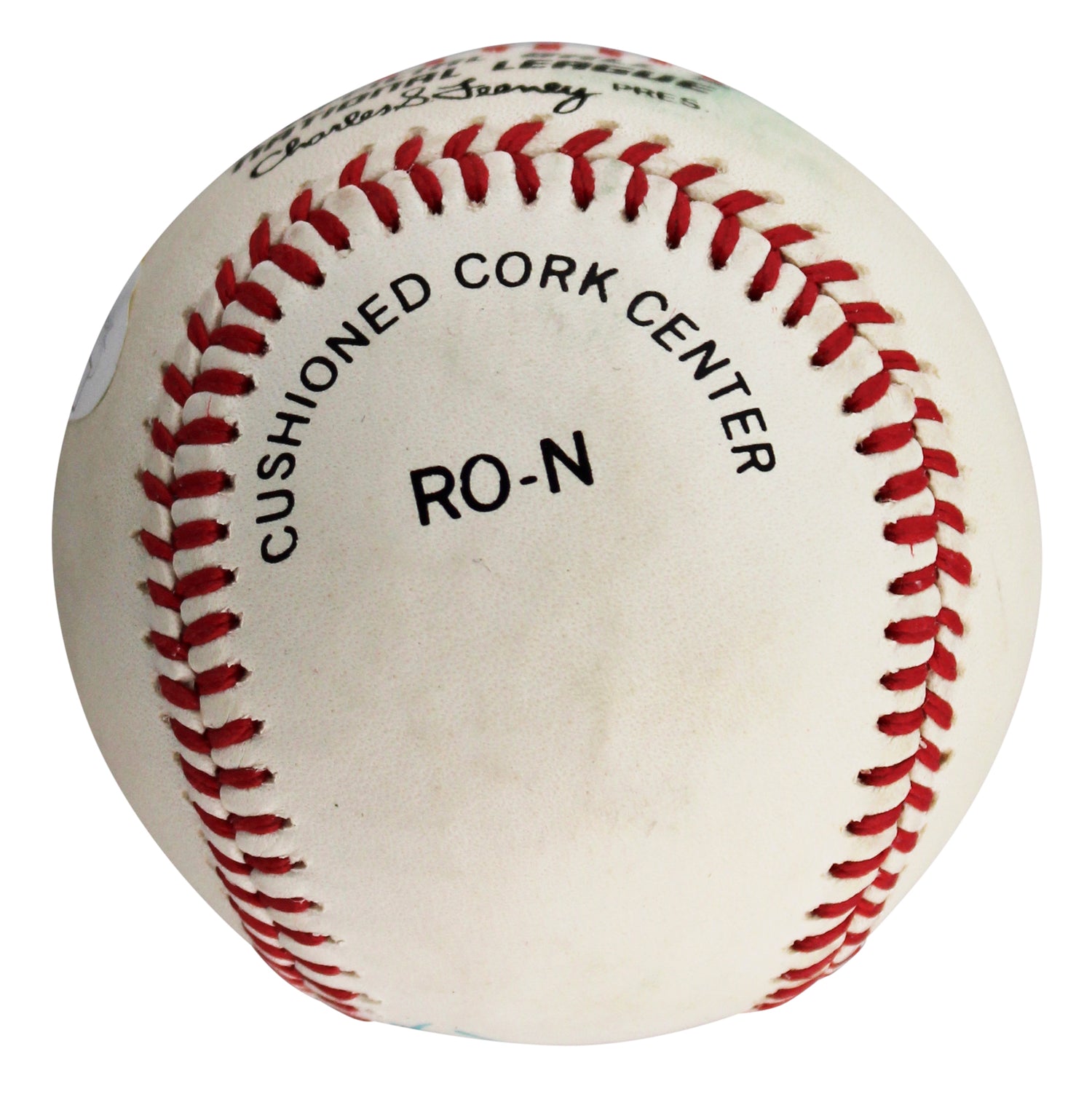This autographed Charles Feeney ONL baseball has been personally signed by Hank Aaron of the Milwaukee Braves, making it a prized collectible for baseball enthusiasts and memorabilia collectors. A legend of the game, Hank Aaron is best known for breaking Babe Ruth’s long-standing home run record, solidifying his place in baseball history.