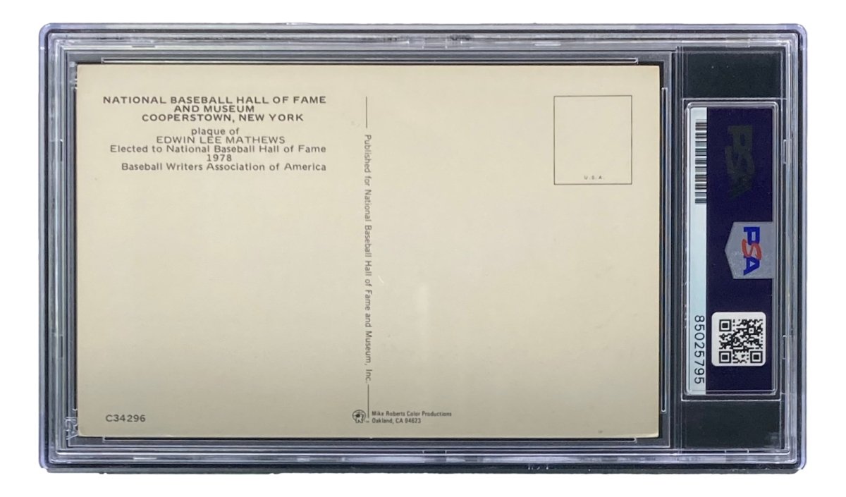 - Classic 4x6 Hall of Fame plaque card, celebrating Mathews' legacy in Cooperstown.