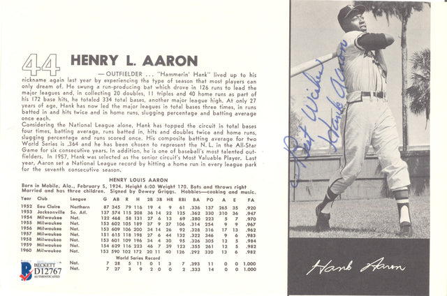 Hank Aaron Autographed 5x8 Magazine Page Photo Milwaukee Braves "Best Wishes" Vintage Playing Days Signature Beckett BAS #D12767 is backordered and will ship as soon as it is back in stock.