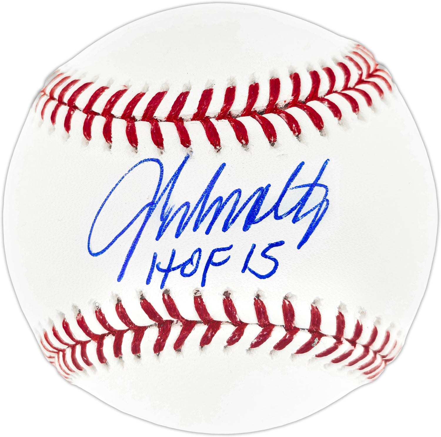 Celebrate the legacy of a Hall of Fame pitcher with this Official MLB Baseball hand signed by John Smoltz. A cornerstone of the legendary Atlanta Braves rotation of the 1990s, Smoltz is the only pitcher in Major League Baseball history to notch both 200 wins and 150 saves, making this item a must-have for serious collectors and baseball fans alike. The baseball features the exclusive inscription "HOF 15", commemorating his induction into the Baseball Hall of Fame in 2015—a proud milestone in his remarkable career.