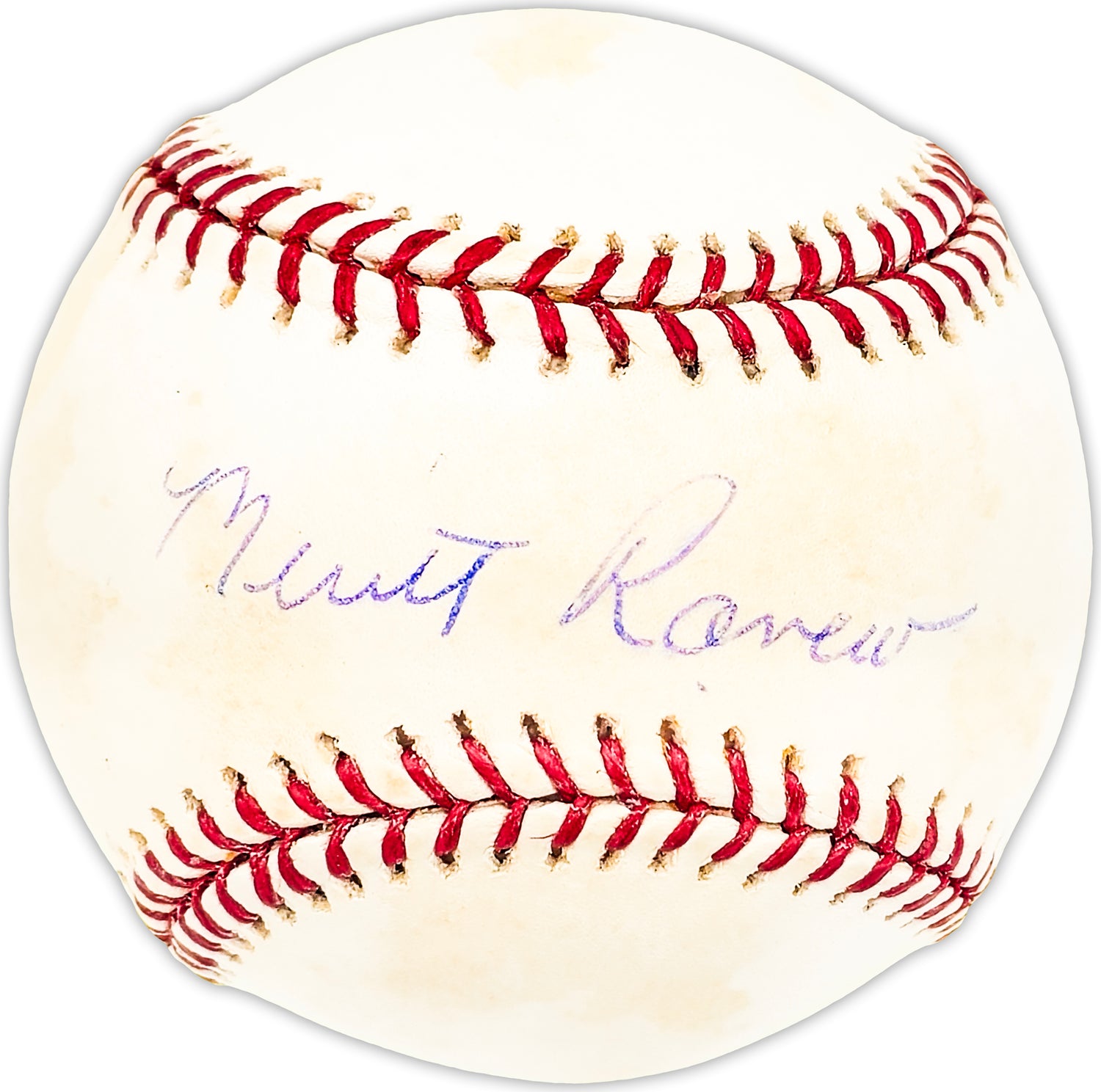 This is an Official MLB Baseball personally hand-signed by Merritt Ranew, making it a valuable piece for collectors and baseball history enthusiasts.