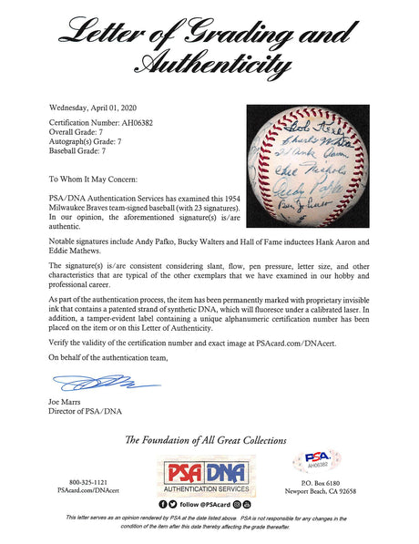 1954 Braves (23) Aaron, Mathews Signed Giles Onl Baseball Graded 7 PSA & JSA LOA