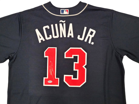 Atlanta Braves Ronald Acuna Jr. Autographed Blue Nike Jersey Size XL Beckett BAS Stock #205685