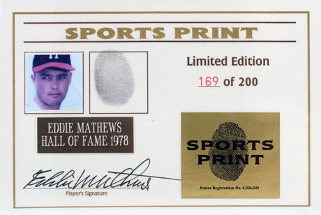 Braves Eddie Mathews Signed Thumbprint Baseball LE #'d/200 w/ Display Case BAS
