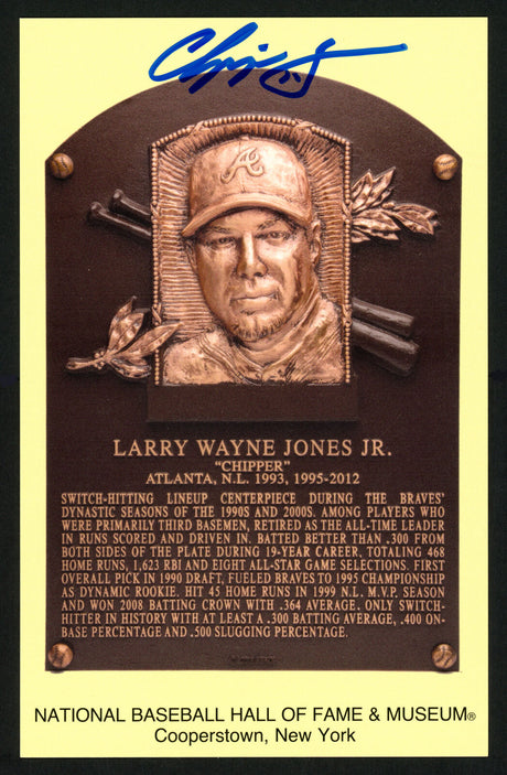 Very low stock (1 unit)$59Unit price /UnavailableChipper Jones Autographed HOF Plaque Postcard Atlanta Braves Stock #150326