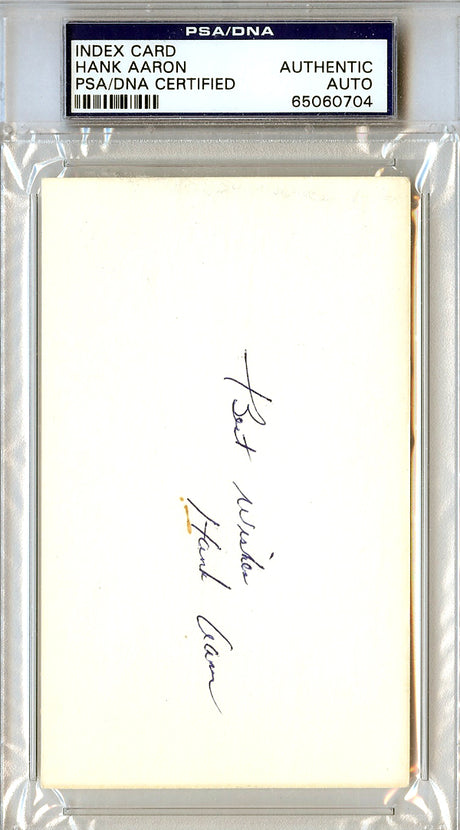 Hank Aaron Autographed 3x5 Index Card Atlanta Braves "Best Wishes" JSA #L02659