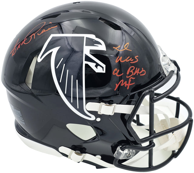 Own a piece of Atlanta Falcons history with this Atlanta Falcons 1990-02 Throwback Black Full Size Authentic Speed Helmet, hand signed by legendary wide receiver Andre Rison. Known for his electrifying play and larger-than-life personality, Rison left a lasting mark on the Falcons and the NFL during the early 1990s. This helmet celebrates that iconic era with authentic throwback styling and a bold personal touch — Rison’s unforgettable inscription, "I Was A Bad MF." Whether you're a lifelong Atlanta Falcons fan or a dedicated memorabilia collector, this rare collectible offers both cultural and historical value. Authenticated by Beckett Authentication Services (BAS), the autograph and inscription were witnessed in person, ensuring 100% authenticity and long-term investment value.