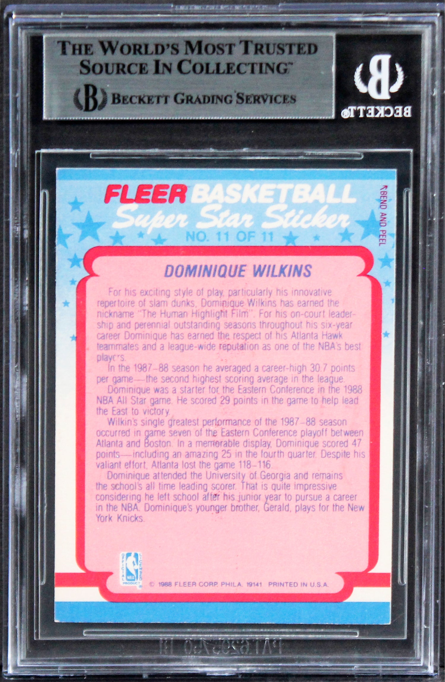 Hawks Dominique Wilkins Authentic Signed 1988 Fleer Stickers #11 Card BAS Slab