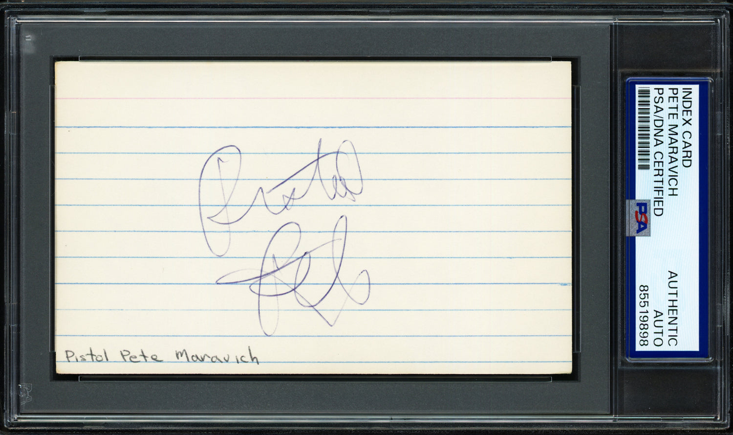 Pistol Pete Maravich Autographed 3x5 Index Card Atlanta Hawks PSA/DNA #85519898