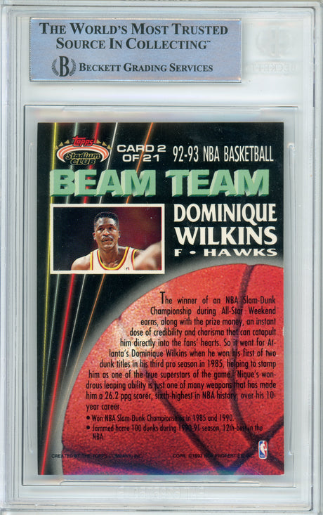 1992-93 Stadium Club Beam Team #2 Dominique Wilkins Hawks BGS Autograph 10