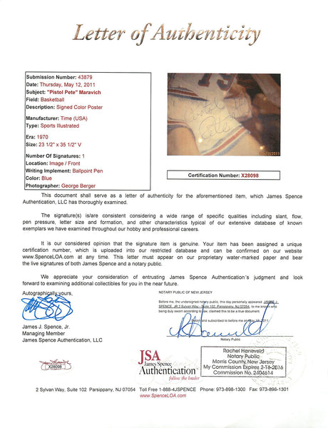 Hawks "Pistol" Pete Maravich Authentic Signed 20x30 Poster PSA/DNA & JSA LOA