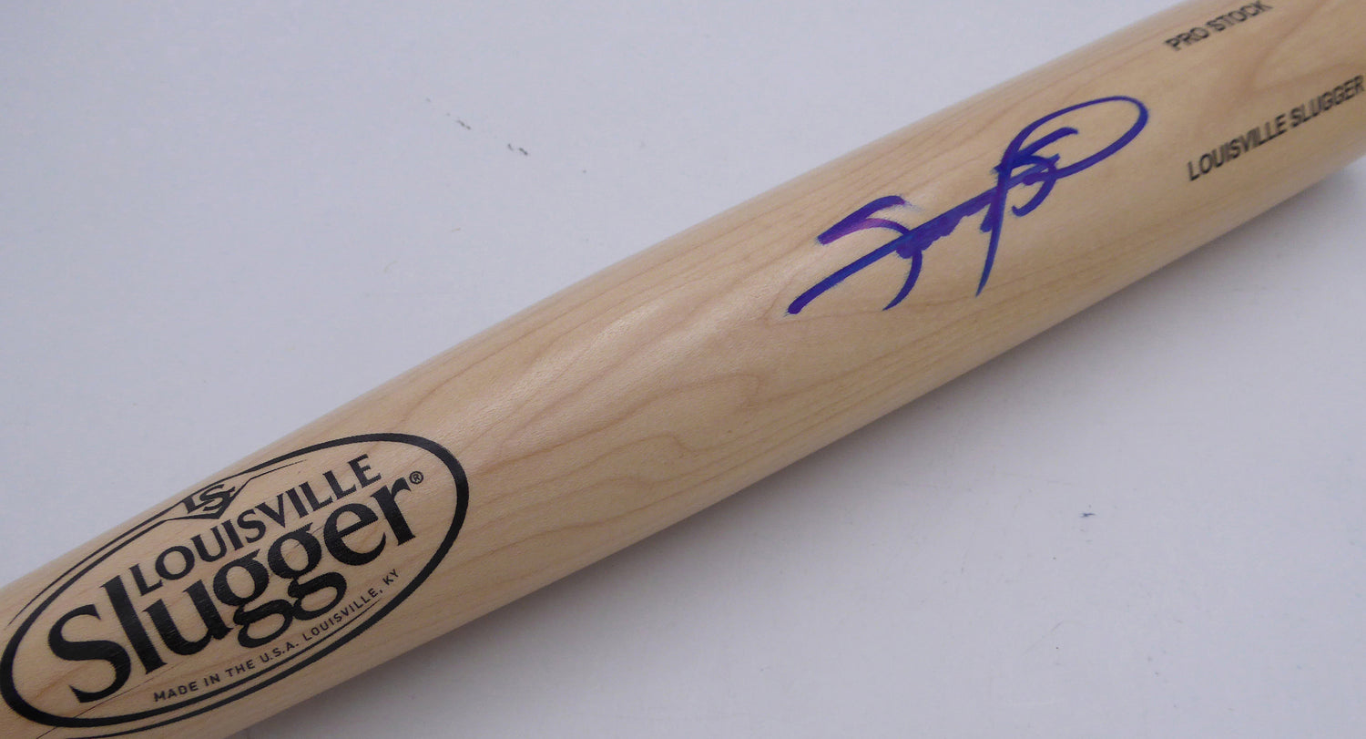 - Authentic Blonde Louisville Slugger Bat hand signed by Sammy Sosa