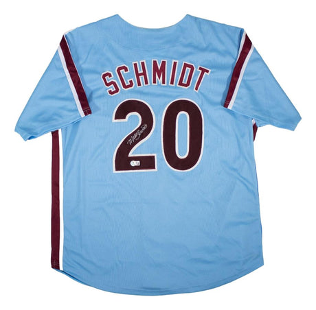 Mike Schmidt Philadelphia Signed Light Blue Baseball Jersey BAS