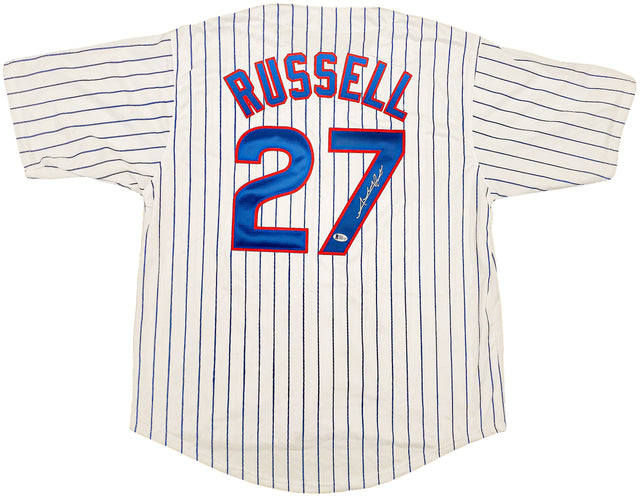 Chicago Cubs Addison Russell Autographed White Jersey Beckett BAS Stock #196620 is backordered and will ship as soon as it is back in stock.