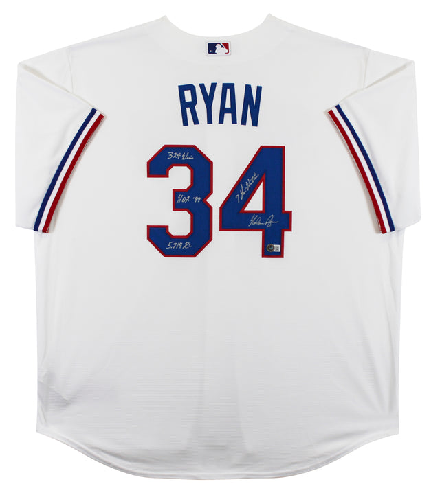 Rangers Nolan Ryan "4x Insc" Authentic Signed White Nike Jersey Autographed BAS