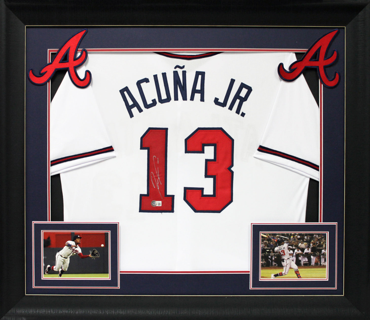 Ronald Acuna Jr. Authentic Signed White Pro Style Framed Jersey BAS Witnessed