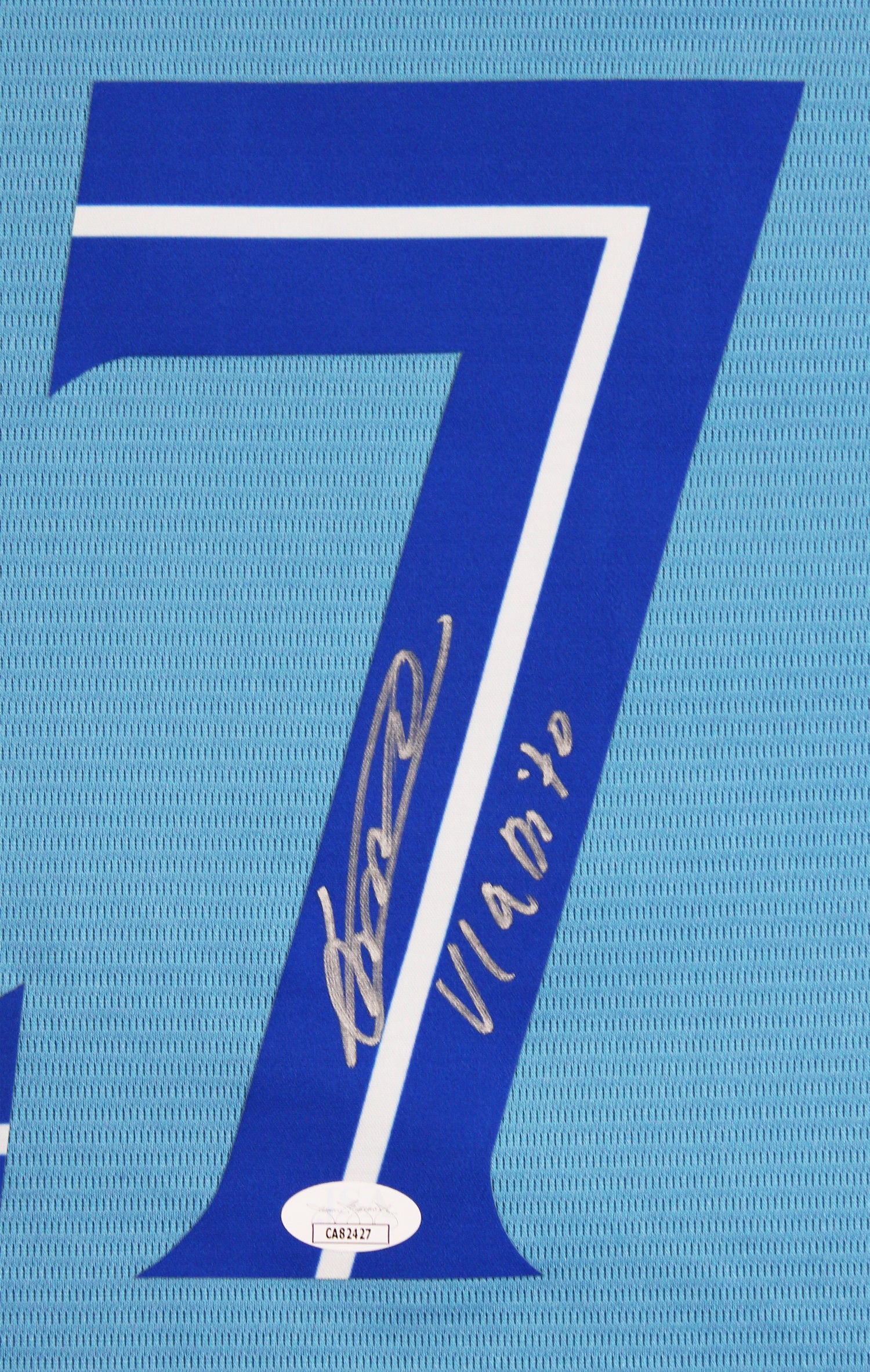 Own a piece of Toronto Blue Jays history with this Autographed Blue Pro Style Jersey personally signed by Vladimir Guerrero Jr., affectionately known as "Vladito." As one of Major League Baseball's most exciting power hitters, Guerrero Jr. has quickly become a fan favorite and a cornerstone of the Blue Jays franchise. This exclusive signed jersey is a must-have for serious collectors and dedicated fans alike. Each jersey is hand-signed and includes the "Vladito" inscription, making every signature a unique tribute to this rising star's vibrant personality and on-field dominance. Guerrero Jr.'s legacy continues to grow, and now is your chance to secure a collectible that celebrates his electrifying impact on the game.