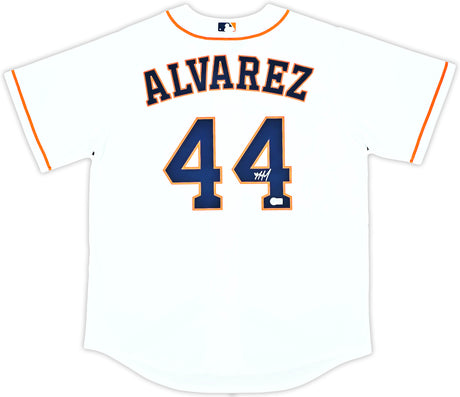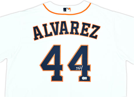 Houston Astros Yordan Alvarez Autographed White Nike Jersey Size L Beckett BAS Witness Stock #220483