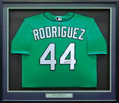 Seattle Mariners Julio Rodriguez Autographed Framed Teal Nike Jersey JSA Stock #218628