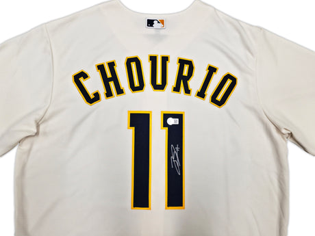 Milwaukee Brewers Jackson Chourio Autographed Cream Nike Jersey Size XL Beckett BAS QR Stock #254435