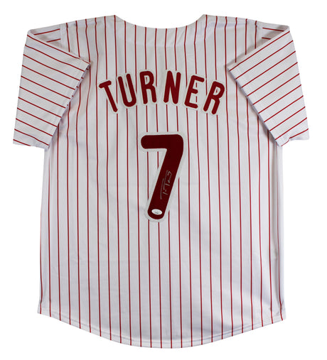 Trea Turner Authentic Signed White Pinstripe Pro Style Jersey Autographed JSA