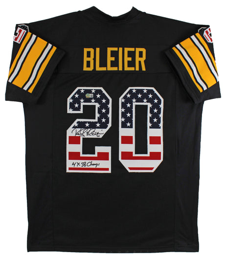 Rocky Bleier "4x SB Champ" Signed Black Pro Style Jersey w/ USA #'s BAS Witness