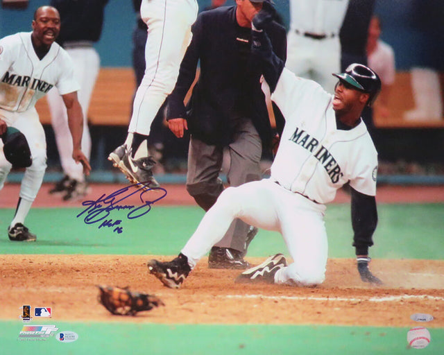Celebrate one of baseball’s most iconic figures with this stunning Ken Griffey Jr. signed Seattle Mariners slide 16x20 photo, featuring his legendary slide and the exclusive 'HOF 16' inscription. A must-have piece of memorabilia for Mariners fans and baseball collectors alike, this photo captures the energy and legacy of a Hall of Fame career that redefined a generation of the game. This collectible doesn't just showcase Griffey’s signature—it delivers authenticated value with a Beckett Authentication tamper-evident sticker and matching Certificate of Authenticity, ensuring legitimacy and long-term investment potential. Relive the glory of Ken Griffey Jr., who solidified his legacy with the Seattle Mariners before being inducted into the Hall of Fame in 2016.