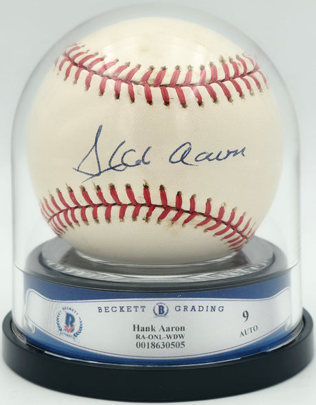 Hank Aaron Autographed Official NL Baseball Atlanta Braves Auto Grade Mint 9 Beckett BAS #18630505