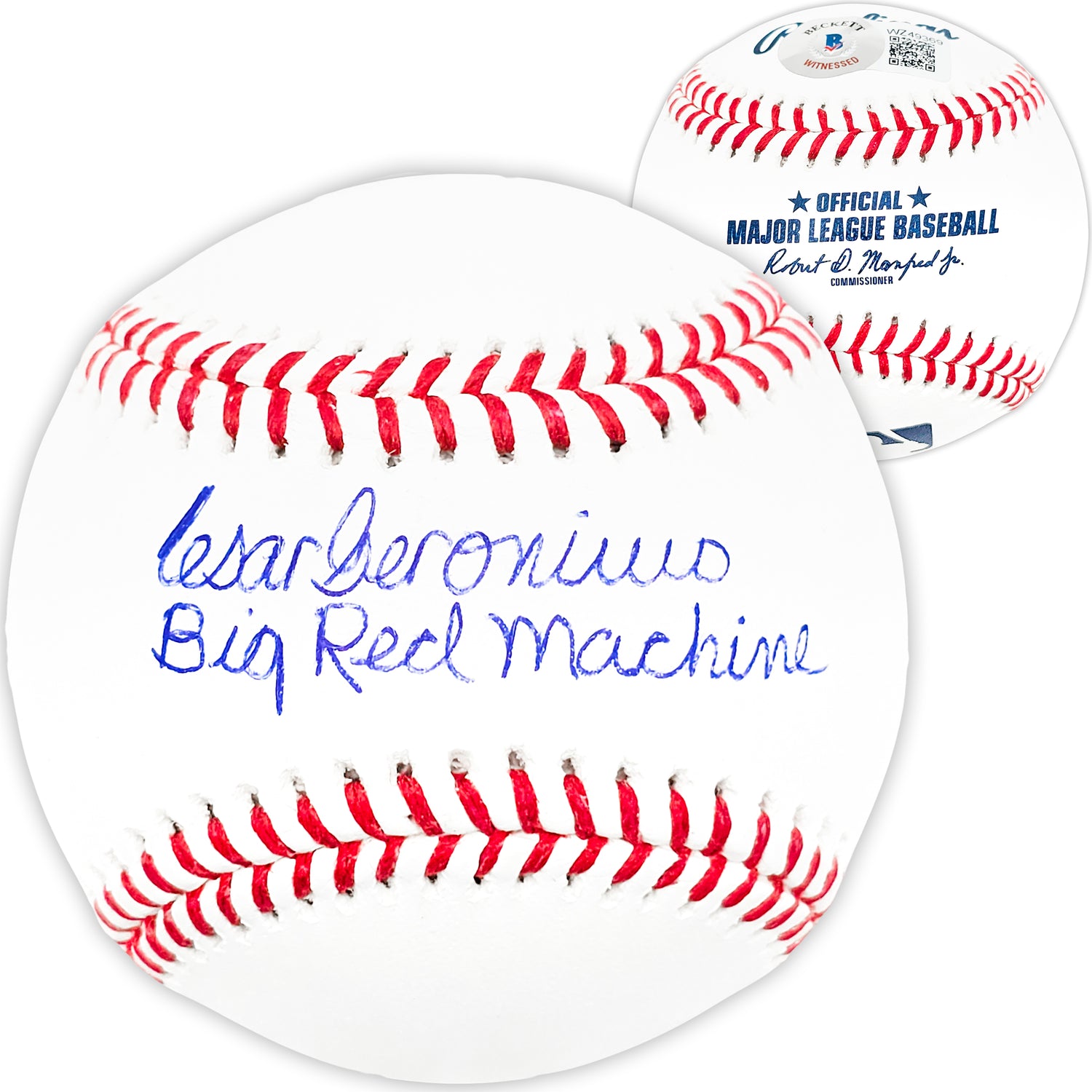 This Official MLB Baseball has been hand-signed by Cesar Geronimo and features the inscription "Big Red Machine." A key member of the legendary Cincinnati Reds dynasty of the 1970s, Geronimo was an integral part of the team's back-to-back World Series championships in 1975 and 1976. This autographed baseball is a must-have for collectors and fans of one of the most dominant teams in baseball history.