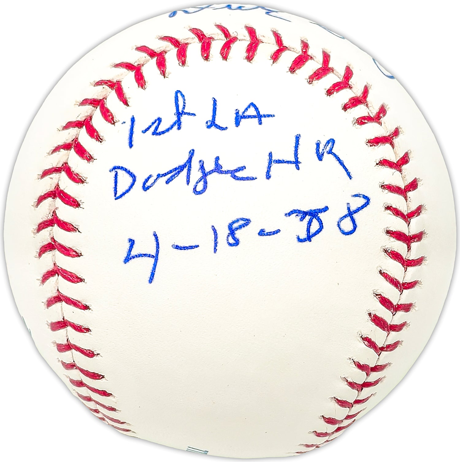 Own a piece of baseball history with this Official MLB Baseball, hand-signed by Dick Gray. This rare collectible features the special inscription, "1st LA Dodgers HR 4-18-58," commemorating Gray’s milestone as the first player to hit a home run for the Los Angeles Dodgers after their relocation to LA in 1958.