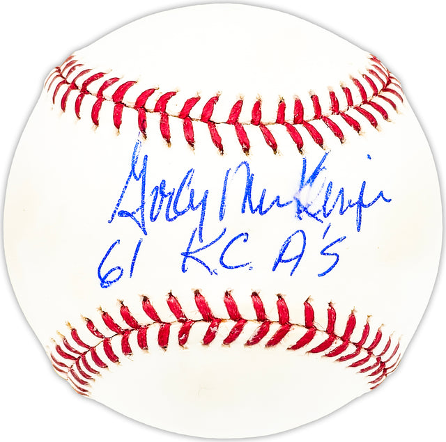 Gordy MacKenzie Autographed Official MLB Baseball KC A's "61 KC A's" Beckett BAS QR #BM25700 is backordered and will ship as soon as it is back in stock.