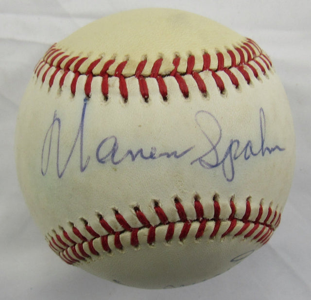 Collector Grade autographed and dual-signed Rawlings baseball—premium memorabilia from Hall of Famers Warren Spahn and Stan Musial, authenticated by JSA (CL29267). Stan Musial was a 24-time All-Star, three-time NL MVP, and three-time World Series champion, earning Hall of Fame induction in 1969. Warren Spahn remains MLB’s winningest left-handed pitcher with 363 victories, won the 1957 Cy Young Award, captured a World Series title that same year, and entered the Hall of Fame in 1973.