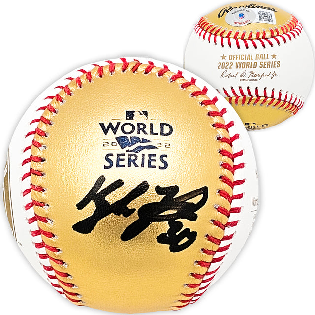 Kyle Tucker Autographed Official 2022 Gold World Series Gold MLB Baseball Houston Astros Beckett BAS Witness Stock #215400 is backordered and will ship as soon as it is back in stock.
