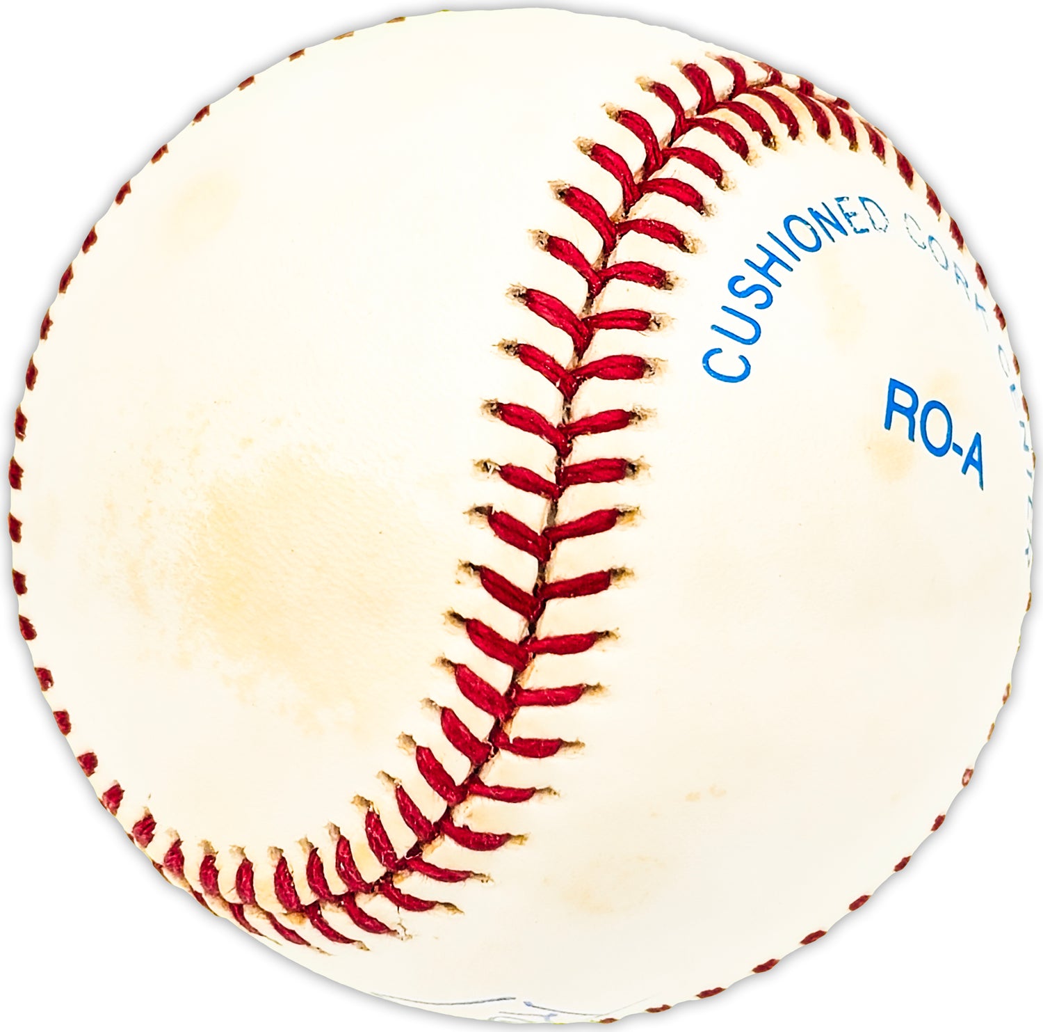 This Official American League Baseball has been hand-signed by Ray Murray, making it a must-have piece for baseball collectors and vintage sports memorabilia enthusiasts. This rare autograph adds historical value to any collection, celebrating Murray’s legacy as a former catcher in Major League Baseball.