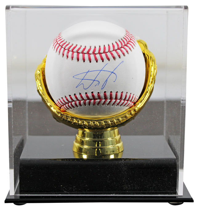 Own a piece of Tampa Bay Rays history with this Autographed OML Baseball Gold Glove Acrylic Display Case, personally signed by rising star Wander Franco. This exclusive collectible is a must-have for fans and memorabilia enthusiasts alike. Each signature is 100% authentic, verified by JSA with a Certificate of Authenticity (COA) and hologram for guaranteed legitimacy.