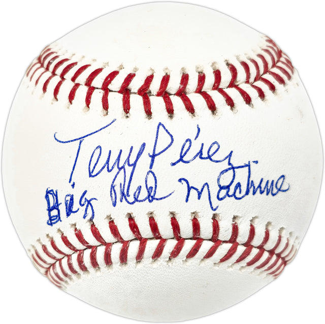 This is an Official MLB Baseball personally hand-signed by Tony Pérez and inscribed with "Big Red Machine." A legendary member of the Cincinnati Reds dynasty, Pérez played a pivotal role in the dominance of the 1970s Big Red Machine, helping secure back-to-back World Series championships in 1975 and 1976.