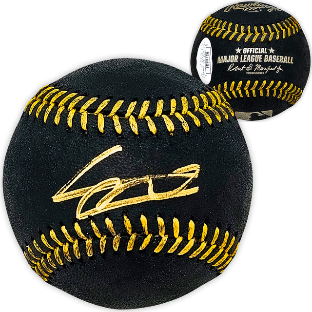 Own a piece of baseball history with this Official Black MLB Baseball hand-signed by Vladimir Guerrero Jr. A rising star and one of the most electrifying players in the game today, Guerrero Jr. continues to make an impact with his power-hitting and all-around talent. This unique collectible is a must-have for any dedicated fan or memorabilia collector.