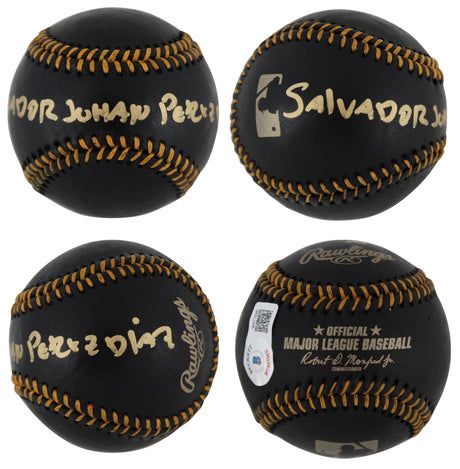 Royals Salvador Johan Perez Diaz Full Name Signed Black Oml Baseball w/ Case BAS