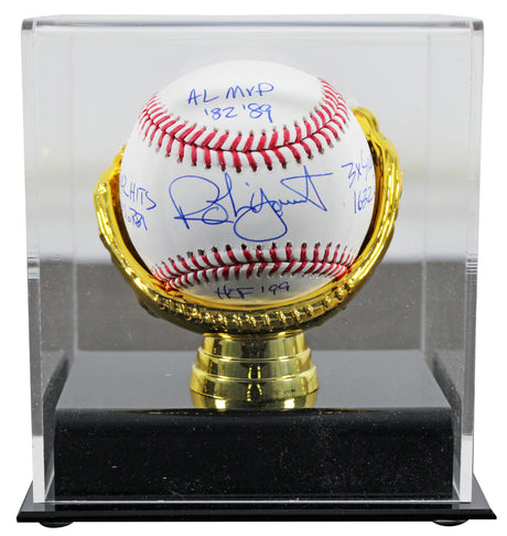 Brewers Robin Yount "6x Stat" Authentic Signed Oml Baseball w/ Case BAS Wit 2